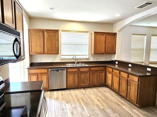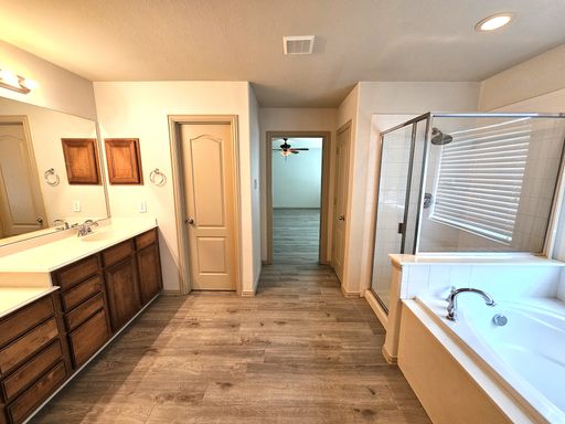 Resort-inspired living in Providence Village. A charming covered front porch with a swing welcomes you into this beautifully updated home. Inside, a dedicated office offers the perfect space for remote work or creative pursuits. The spacious living area is filled with abundant natural light and enhanced by new flooring and fresh paint throughout. The kitchen features stainless steel appliances, generous counter space, and ample cabinetry—ideal for both everyday living and entertaining. Upstairs, a large game room opens to a private deck, providing an exceptional bonus space for relaxation or fun. All guest bedrooms include ceiling fans and walk-in closets. The expansive primary suite boasts a sitting area and a luxurious en-suite bath with dual sinks, dual vanities, a garden tub, separate shower, and an enormous walk-in closet. A rare tandem 3-car garage adds exceptional storage and flexibility. Enjoy a private backyard retreat featuring an open patio—perfect for relaxing, entertaining, or outdoor dining. Enjoy unmatched community amenities, including multiple lakes stocked with trophy bass, scenic greenbelts, and miles of trails for jogging, biking, or peaceful walks. Just steps away, residents have access to a community water park with slides, pools, pickleball and tennis courts, skate park, basketball courts, baseball and soccer fields, fitness center, and a state-of-the-art clubhouse. Conveniently located near major highways, shopping, dining, and entertainment, this home delivers both comfort and lifestyle. A must-see opportunity you don’t want to miss.
