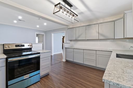 Completely renovated 4 bedroom 2 bathroom home less than 1 mile from TCU. Modern finishes & sophisticated details. Updates include luxury vinyl plank, fresh paint, new light fixtures, energy efficient windows, new window coverings & much more. Dual over-sized living areas. Wood burning brick fireplace. Kitchen offers granite countertops, new stainless steel appliances, under mount sink, & generous counter & cabinet space. Spacious guest bedrooms all with ceiling fans. Bathroom upgrades include new everything with granite countertops. Large master with enormous walk in closet. Enjoy the covered porch & open patio. 2 car detached garage. Prime location. Must see!