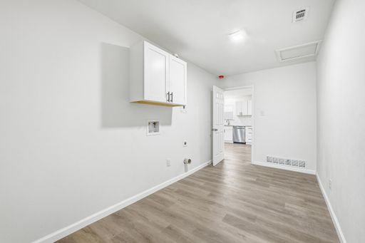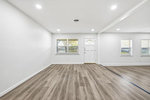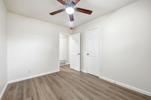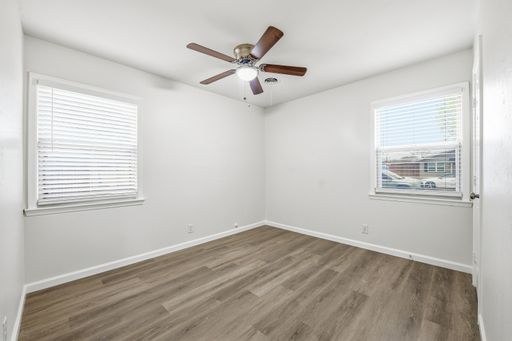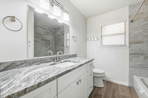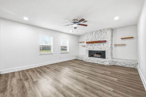 FULLY UPDATED!!! You will LOVE this home. Move-in-ready 3-bedroom, 2-bathroom home in Hurst Park sits on a spacious, oversized corner lot and includes a large shed in the backyard. Fully reimagined, the interior features new durable wood plank flooring and new paint throughout, brand-new cabinetry, and high-end granite countertops. The home includes a full suite of new stainless steel appliances, complemented by modern lighting, new fans, updated hardware, a new water heater, and new HVAC. Relax in the comfortable living room anchored by a classic stone fireplace. A standout feature is the oversized utility room with an attached second bathroom, which provides excellent functional space. Finished with 2-inch faux wood blinds and fresh updates from top to bottom. This is a family-friendly home offering peace of mind of like-new construction in a fabulous Hurst neighborhood, it's amazing!